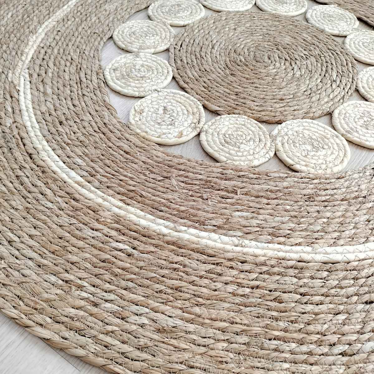 Crea un ambiente único y especial con esta alfombra redonda de fibra natural añade un toque de luminosidad y energía a su diseño. Perfecta para crear un ambiente acogedor y natural en cualquier espacio.