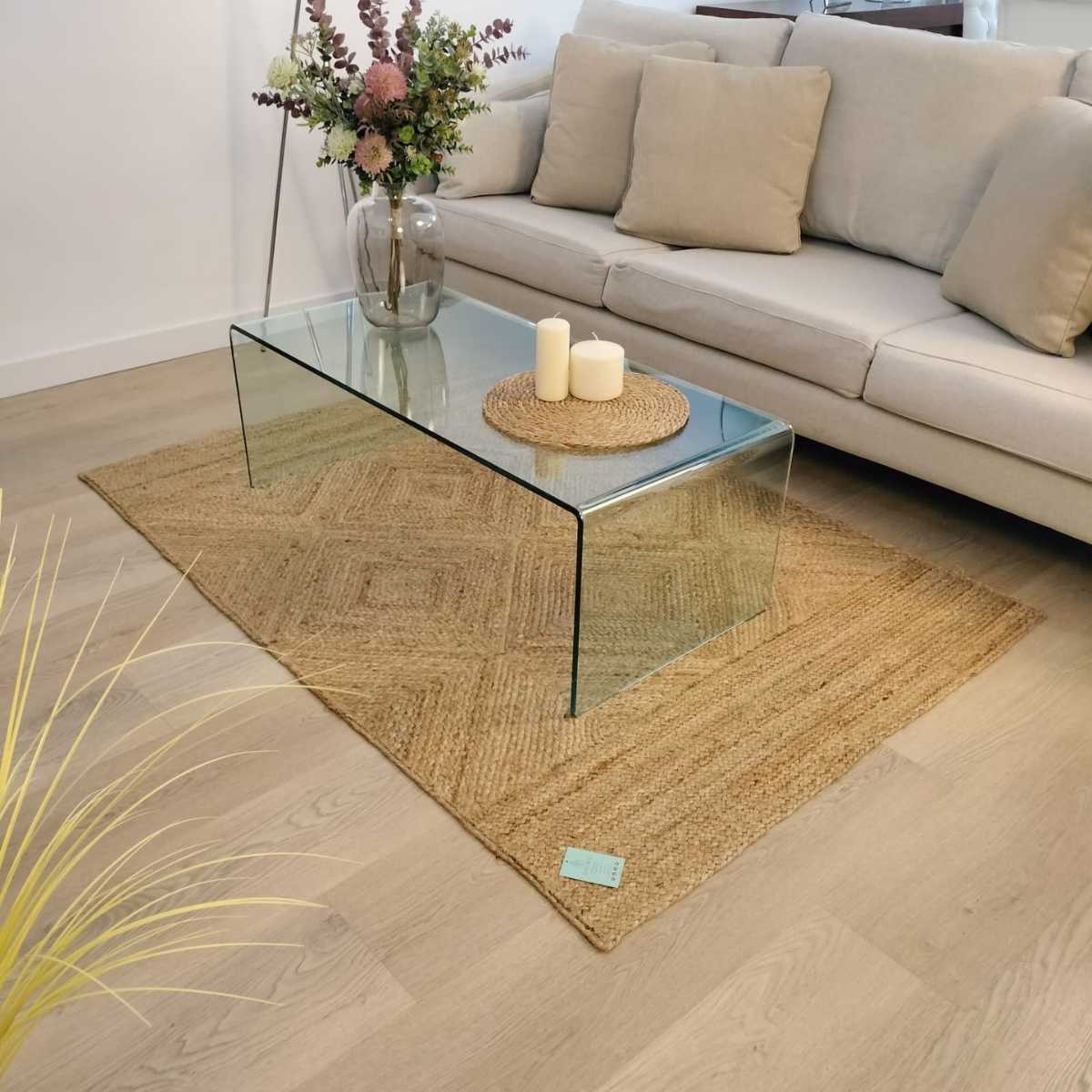 Crea un ambiente acogedor y equilibrado con la Alfombra yute natural bahamas, una pieza que une tradición, diseño y respeto por los materiales naturales.