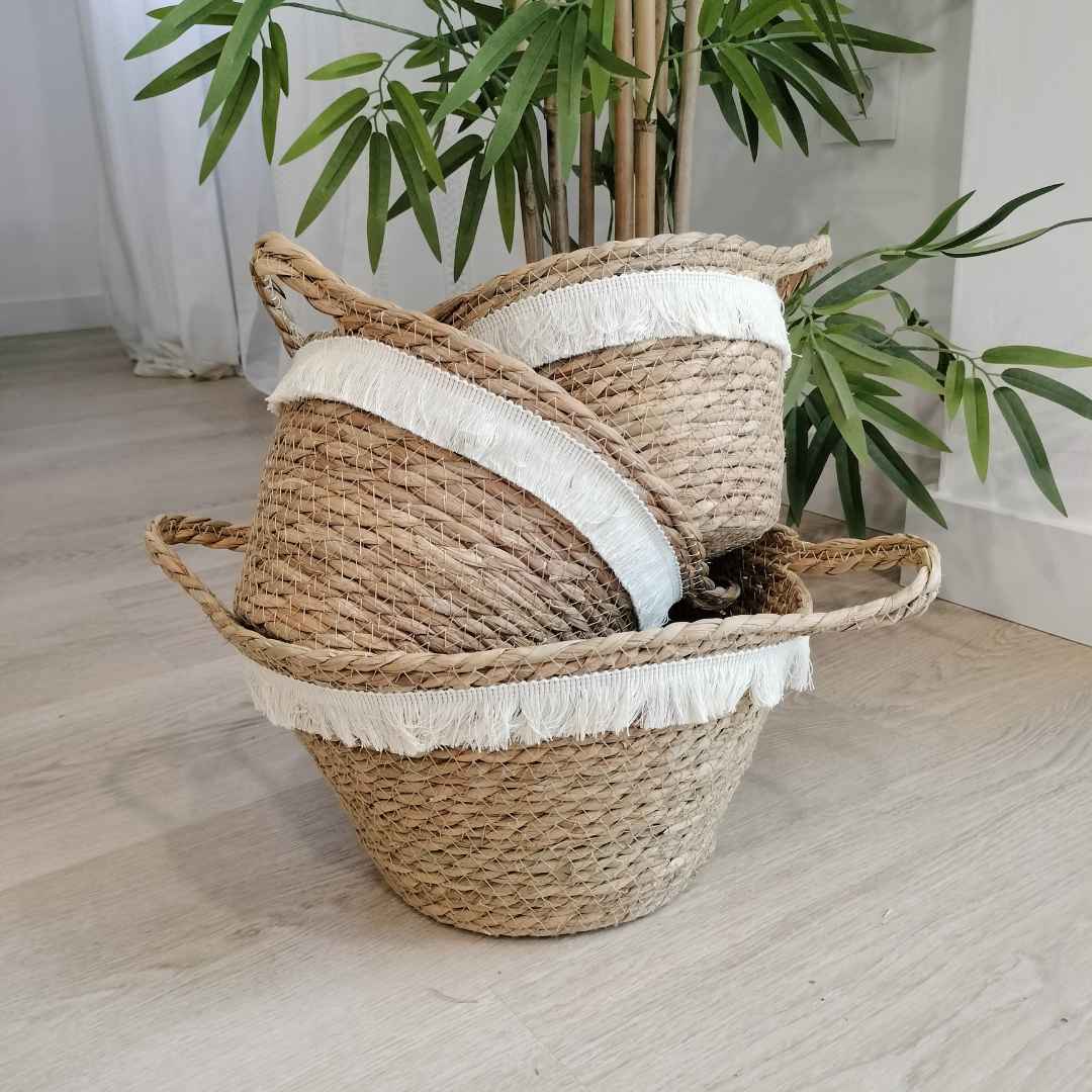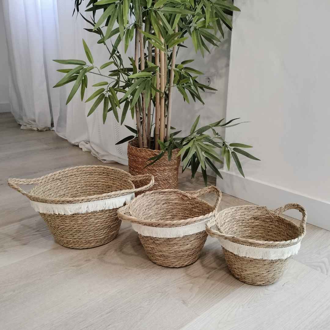Cada cesta Conjunto cestas fibras naturales bahía es única, con pequeñas variaciones en tono o trenzado que reflejan el carácter artesanal de su elaboración. Estas diferencias hacen que cada pieza tenga su propia personalidad.