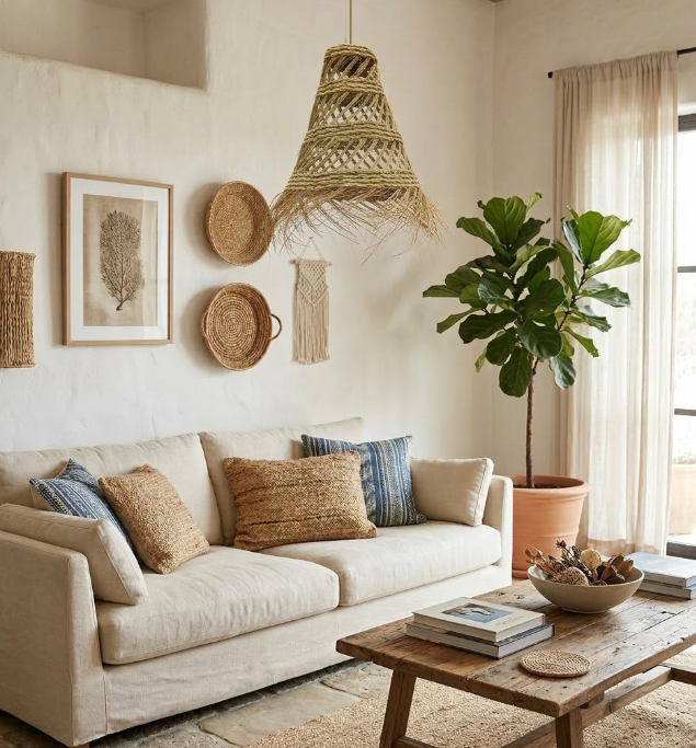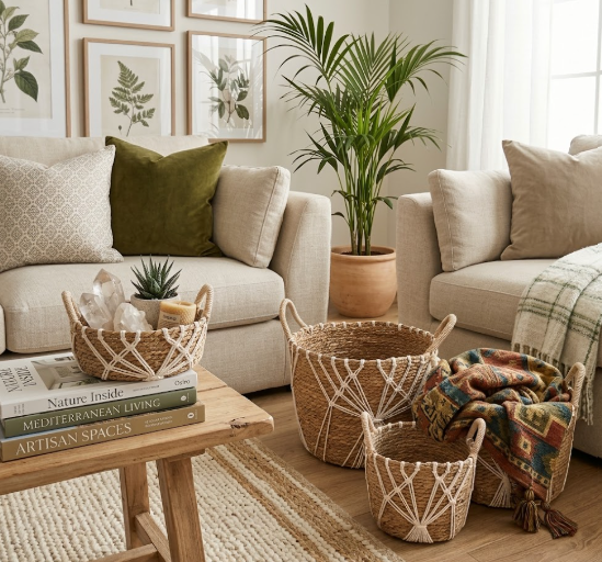 Tres piezas artesanales con fibras naturales que cambian completamente cómo se siente el espacio.