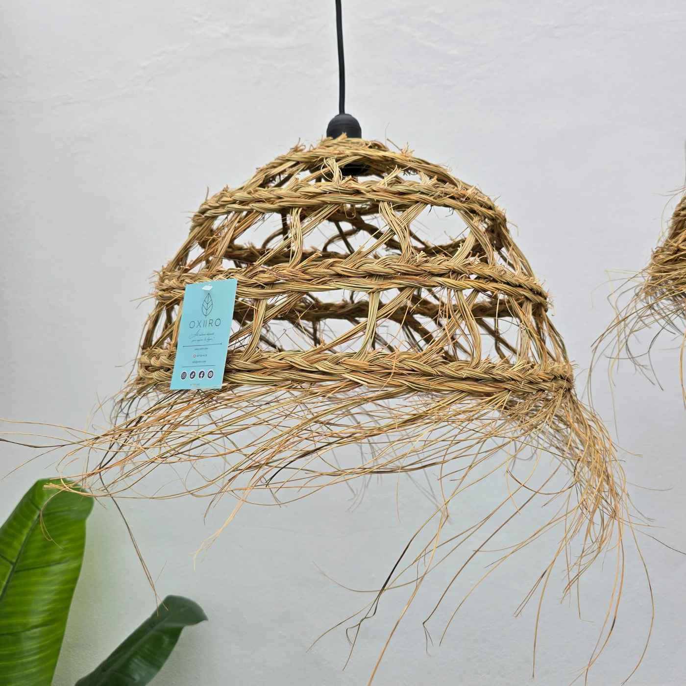 Fabricada con fibras sostenibles, esta lámpara no solo destaca por su belleza, sino también por su compromiso con la naturaleza. Cada pieza refleja el cuidado y la dedicación de los artesanos, creando un ambiente acogedor y equilibrado.