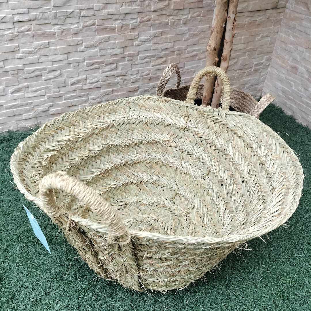 Elegante y funcional, este cesto leñero redondo artesanal de esparto natural con refuerzo, es el complemento perfecto para tu hogar. Ideal para almacenar leña, mantas, juguetes o cualquier otro objeto, aportando un toque rústico y cálido a cualquier espacio. Su diseño redondo y tejido natural lo hacen resistente y duradero.