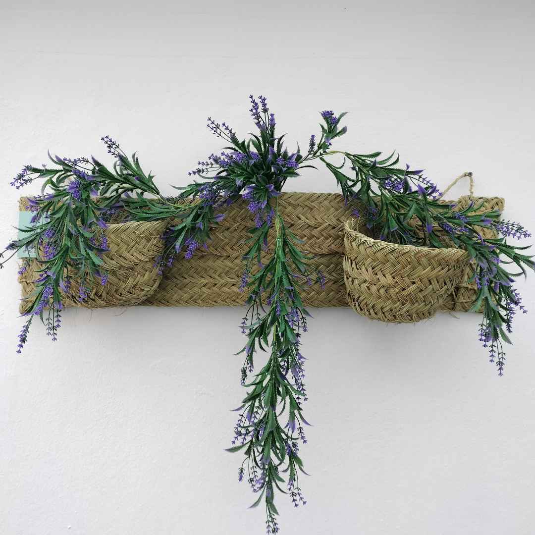 Macetero doble en formato horizontal para dos portamacetas, elaborado en esparto natural 100% y tejido a mano. Con bordes reforzados y estilo boho, es ideal para crear una decoración natural y acogedora.