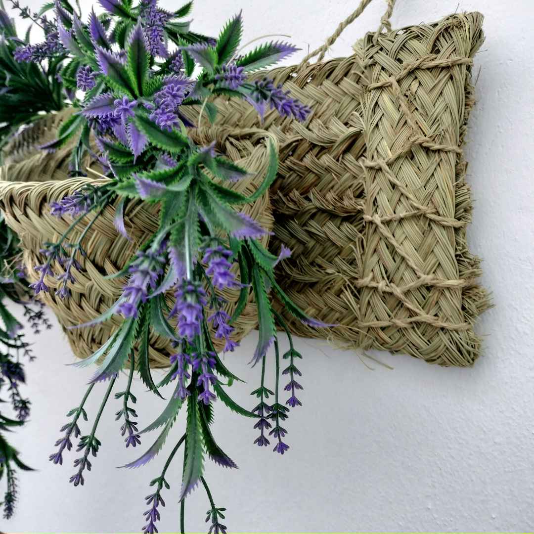 - Retira el polvo con un paño seco o un cepillo suave para conservar el aspecto natural del esparto.