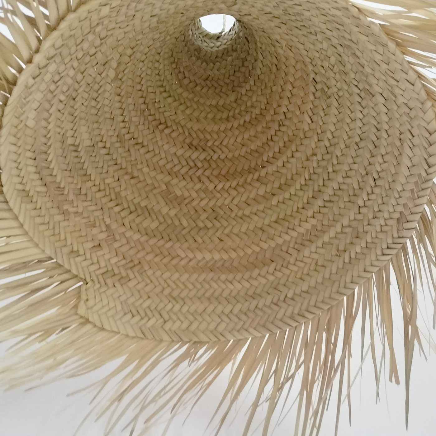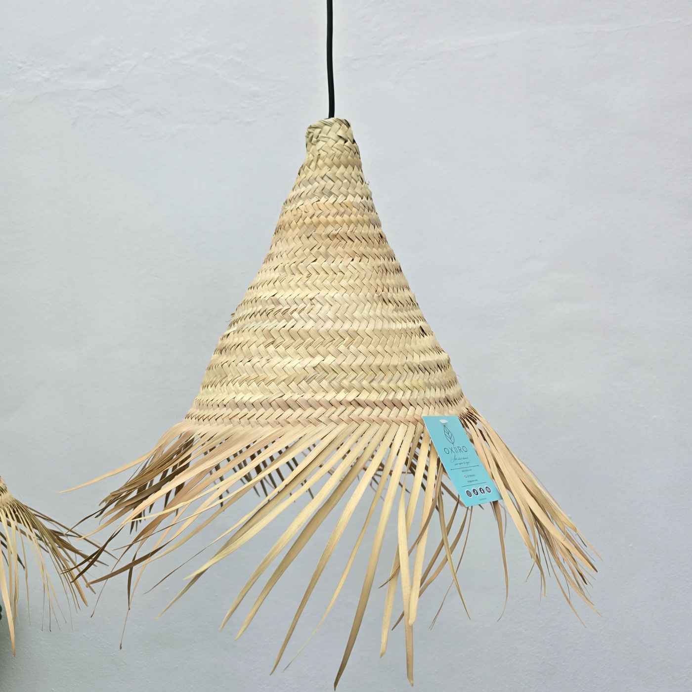 La Lámpara hoja de palma cono con flecos puede utilizarse como pieza principal o complemento decorativo, aportando un toque de calma y autenticidad a cualquier estancia, desde el salón hasta el dormitorio o la zona de comedor.